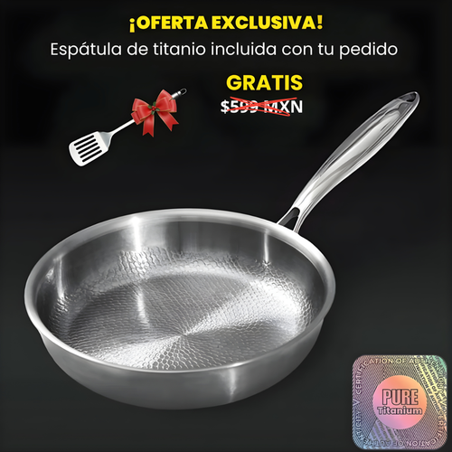 A diferencia de las sartenes tradicionales, esta sartén utiliza titanio puro, lo que ofrece un acabado naturalmente antiadherente y evita el uso de químicos nocivos. Esto no solo promueve una cocina más saludable, sino que también asegura una durabilidad excepcional a largo plazo.